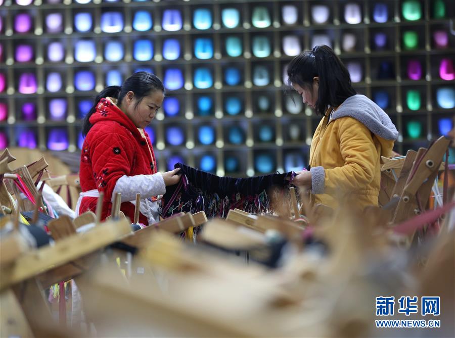 12月24日,在湖南省张家界市武陵源区乖幺妹土家族织锦基地,工人在检查织锦产品。新年临近,张家界市武陵源区土家族织锦企业加紧制作手提包、服饰、家居装饰品等织锦产品,供应节日市场。土家族织锦技艺历史悠久,2006年入选首批国家级非物质文化遗产名录。近年来,当地依托旅游资源优势,扶持土家族织锦产品向规模化、精品化发展。目前,武陵源区开发的织锦产品已有100余种。新华社发(吴勇兵 摄)