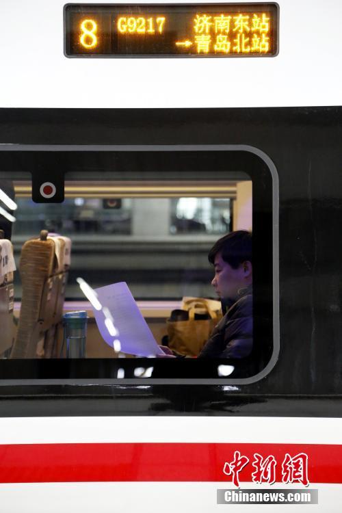 12月26日,济南至青岛高速铁路正式开通运营,共设11座站点,西起济南东站,东至青岛市红岛站。该线路的开通对带动中、东部及南部地区的人员往来、经贸交流,促进区域经济社会发展具有突出作用。 图为乘客从济南乘车前往青岛方向。 中新社记者 沙见龙 摄