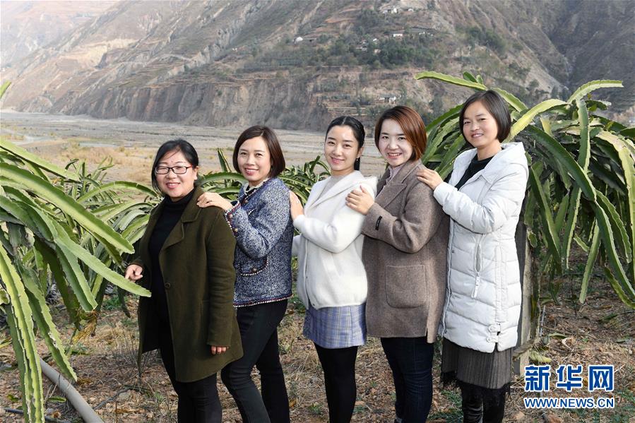 12月17日,云南省昆明市东川区拖布卡镇的“五朵金花”在大山中的种植基地留影(从右至左:刘荣津、马关琴、徐庆、陈应兰、贺传玉)。 东川区是国家级贫困区县之一,大山深处的东川区拖布卡镇贫困面广,成为该区脱贫攻坚的“硬骨头”。近年来,拖布卡镇有5名女同志成为扶贫路上的“五朵金花”。徐庆开垦荒滩种植火龙果,为大荒地村30余户村民创造就业增收的机会;马关琴饲养茶花土鸡带动1000余户建档立卡贫困户脱贫增收;陈应兰带领群众种出玫瑰茄,担起镇里扶贫办公室重任;刘荣津从自己的家乡引进5000只竹鼠进大山,拓展产业致富路;贺传玉一人挑起扶贫数据管理半边天。