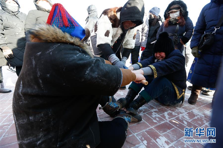 12月26日,牧民在进行“扳棍”。 当日,内蒙古冰雪那达慕系列活动在呼伦贝尔市鄂温克旗继续进行,牧民欢聚一堂,参加各种赛事和趣味项目。 新华社记者 虞东升 摄