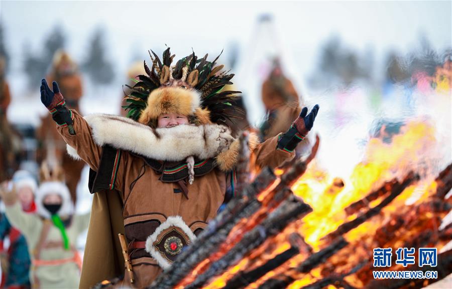 12月26日,民间艺人在“伊萨仁”开幕式上进行民俗表演。 当日,内蒙古呼伦贝尔市第五届鄂伦春冰雪“伊萨仁”在鄂伦春自治旗开幕。“伊萨仁”是鄂伦春语“集会”“聚会”的意思。此次“伊萨仁”期间,将举行鄂伦春徒步林海穿越、汽车越野拉力赛、冰雪观赏、雪上冲浪等活动,为游客带来不一样的冰雪体验。 新华社发(丁根厚 摄)