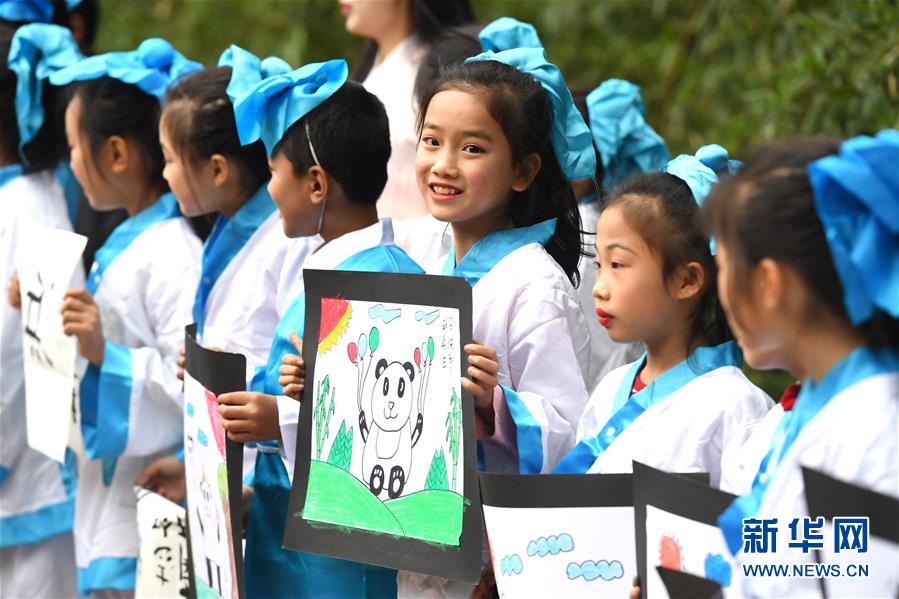 12月26日,小朋友展示为大熊猫“明浜”制作的生日卡片。