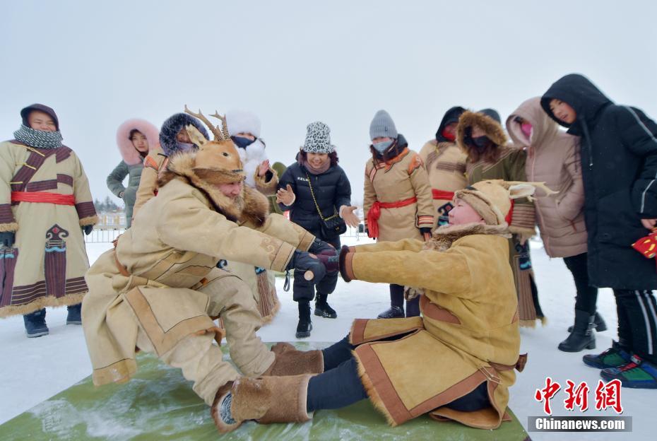 12月26日,第五届鄂伦春冰雪伊萨仁(鄂伦春语,意为“集会”)在内蒙古自治区呼伦贝尔市鄂伦春自治旗开幕。图为鄂伦春族民众在“拉棍”比赛中角逐。中新社记者 侯玉鹏 摄