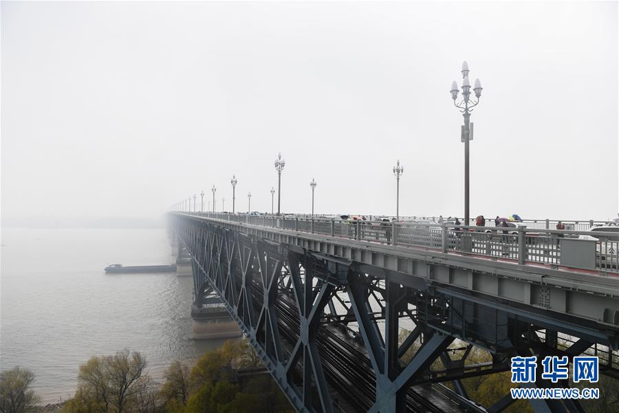 南京长江大桥向公众开放三天 市民冒雨参观