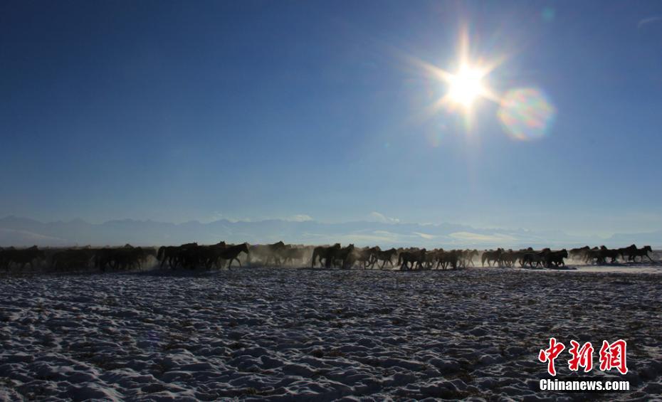 12月28日,在地处天山深处的新疆和静县巴音布鲁克大草原上,气温达到零下32℃,一望无际的大草原上白雪皑皑,上万匹骏马洋洋洒洒、踏着积雪,从游人的眼前呼啸而过,场面气势恢宏。史玉江 摄