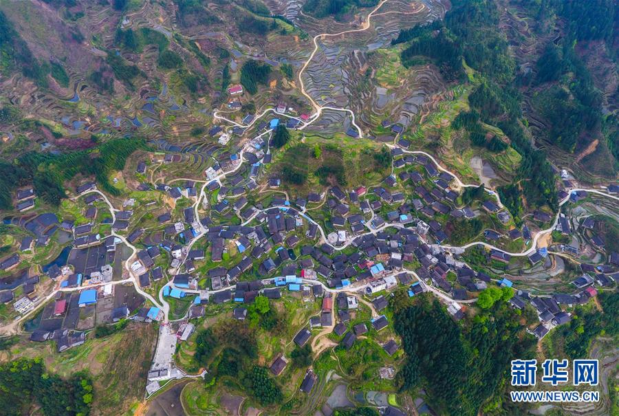 这是借助无人机拍摄的广西融水苗族自治县杆洞乡高显村公路(3月29日摄)。 2018年是全面贯彻党的十九大精神的开局之年,农业发展稳中有进,打赢脱贫攻坚战三年行动开局良好,乡村建设迈出新的步伐,农村改革深入推进,农村社会保持和谐稳定,“三农”持续向好形势进一步巩固。 新华社记者 黄孝邦摄