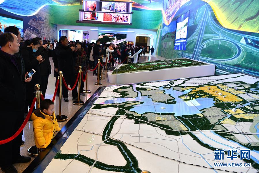 12月30日,参观者在观看河北雄安新区规划沙盘。新华社记者 李鑫 摄