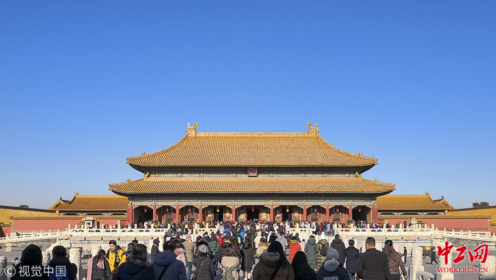 2018年12月30日,北京,在元旦小长假的第一天,很多游客选择到故宫游览的方式欢度元旦。郁青峰/千龙图像/视觉中国