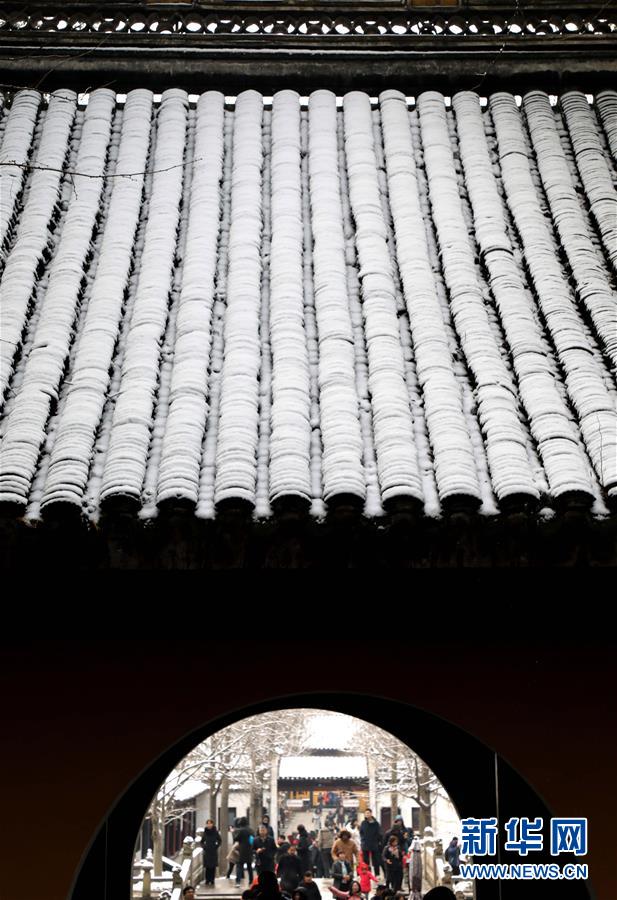 12月31日,游人在江苏苏州虎丘山景区观赏雪景。近日,我国多地迎来降雪,雪后的中国古典建筑别有韵味。新华社发(杭兴微 摄)