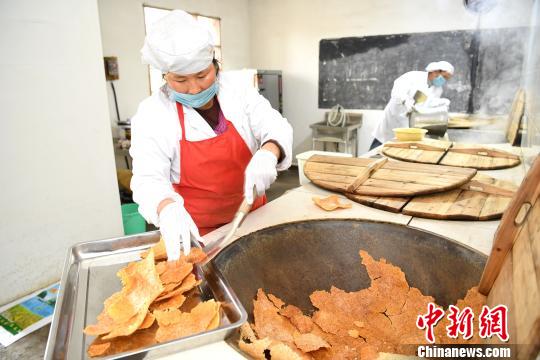 今年49岁的汪明祥和47岁的姚新花是安徽省泾县黄村镇沙元村的一对农民夫妻。2013年,汪明祥突发疾病花光了家里的积蓄,并丧失了一定的劳动能力。王明祥夫妻二人为了靠自己的双手实现脱贫,开始在家里生产手工锅巴,经济状况慢慢好转起来。脱贫后的夫妻俩开始琢磨如何进一步发展自家的手工锅巴生意。今年,汪明祥和妻子姚新花利用当地扶贫小额贷款和自筹资金创办的强源锅巴厂投产。由于口味地道,价格不高,汪明祥家的锅巴受到市场的欢迎,平均每天生产锅巴50余斤,日均销售额400多元。“不等不靠,甩穷帽,我们夫妻俩靠手艺脱了贫,也有信心实现致富。”汪明祥说。