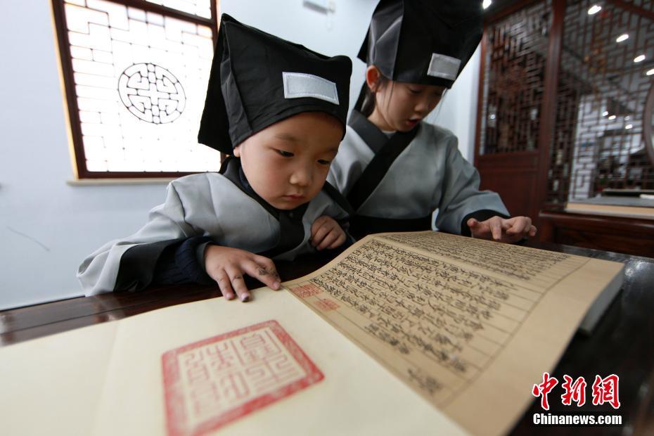 宋版书体现了宋人审美品位与工艺纸墨考究,刊刻精美,装帧大气,勘校严谨,堪称中国文化之瑰宝。新华书店宋书房荟萃还原出版了从先秦、唐宋至明清的儒释道、古诗文、书画琴棋、本草等多种经典古书艺术臻品,其中以国家珍藏的绝世珍稀宋版书最为珍贵。中新社发 钟欣 摄