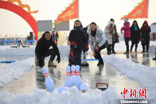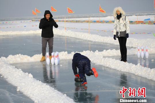 12月31日,在新疆博湖县博斯腾湖大河口景区,游客在趣味项目中戏雪狂欢,尽享冰雪之乐。 年磊 摄