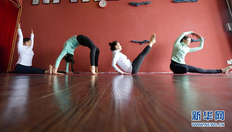 贵州省遵义市的4名瑜伽爱好者用瑜伽动作摆出“Love”的造型(2018年12月31日摄)。她们希望在新的一年里有更多人爱上瑜伽,拥抱健康,拥有美丽。 新华社发(罗星汉 摄)