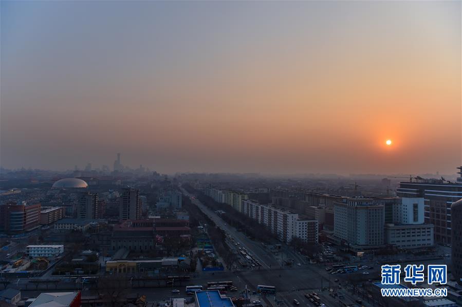 这是2019年1月1日在北京宣武门拍摄的日出。 当日是新年第一天,朝阳升起,万象更新。 新华社记者 李鑫 摄