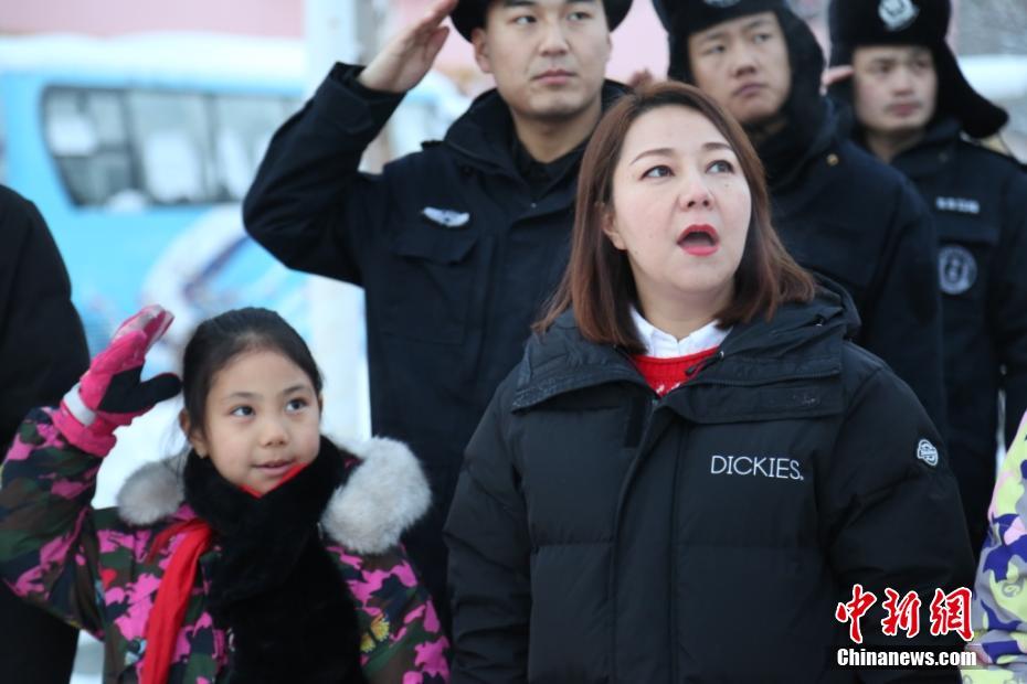 阿丽亚带女儿参加升国旗仪式。崔碧娟 摄