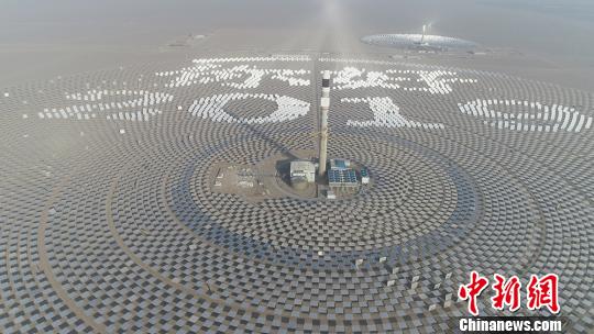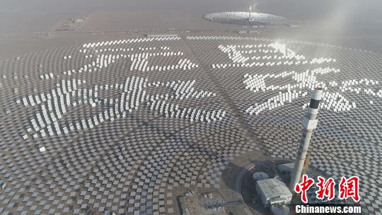 1月1日,2019年第一天,在甘肃敦煌光电产业园区百兆瓦级熔盐塔式光热电站,由1.2万面定日镜拼组而成的“元旦快乐”“新年快乐”“你好2019”等巨大“祝福语”,向全国人民送上新春祝愿。