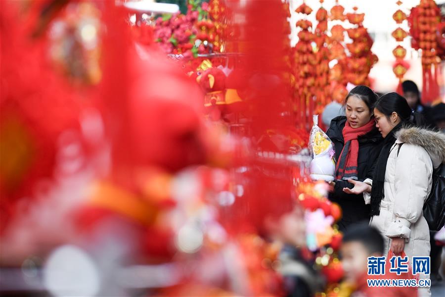 1月1日,市民在合肥城隍庙市场选购新年饰品。 新华社记者张端摄