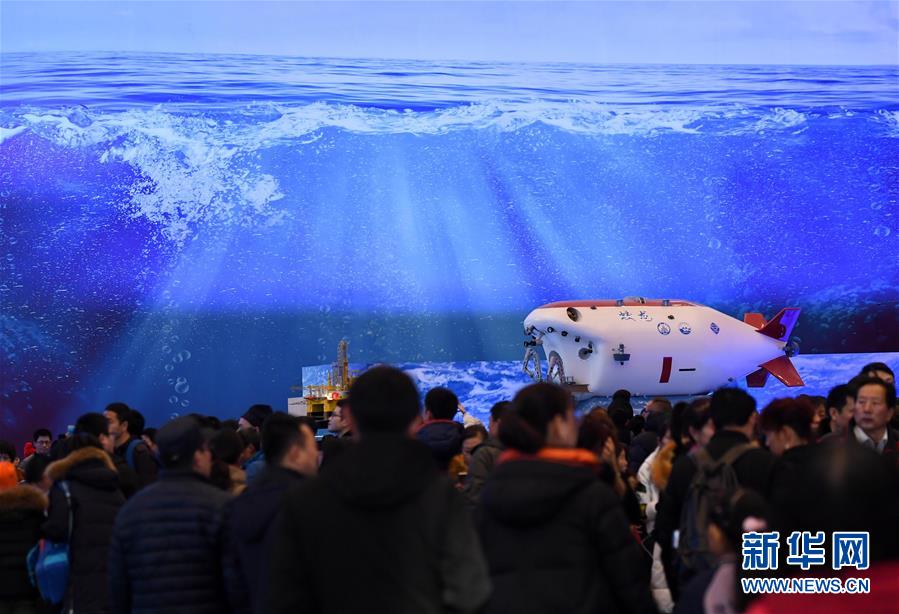 1月1日,观众在展览上参观“蛟龙号”载人潜水器模型。当日是2019年元旦,大批观众来到中国国家博物馆参观“伟大的变革——庆祝改革开放40周年大型展览”,截至当日,累计参观人数超过240万人次。新华社记者 陈晔华 摄