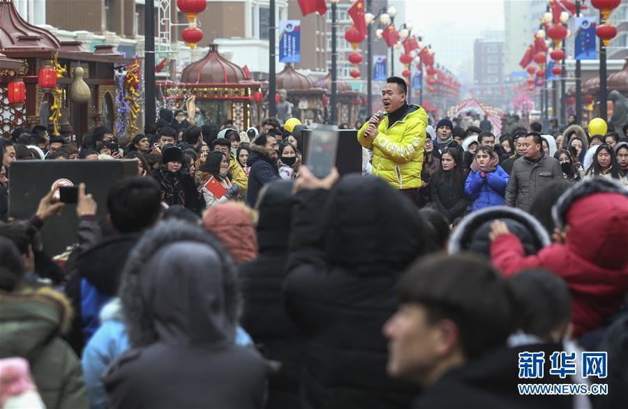 1月1日,在新疆国际大巴扎步行街,一名演员在活动现场演唱。 新华社记者 王菲 摄