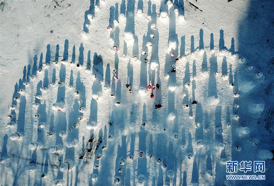 1月2日,市民、游客在雪人群中游玩观赏(无人机拍摄)。 新华社记者 王建威 摄