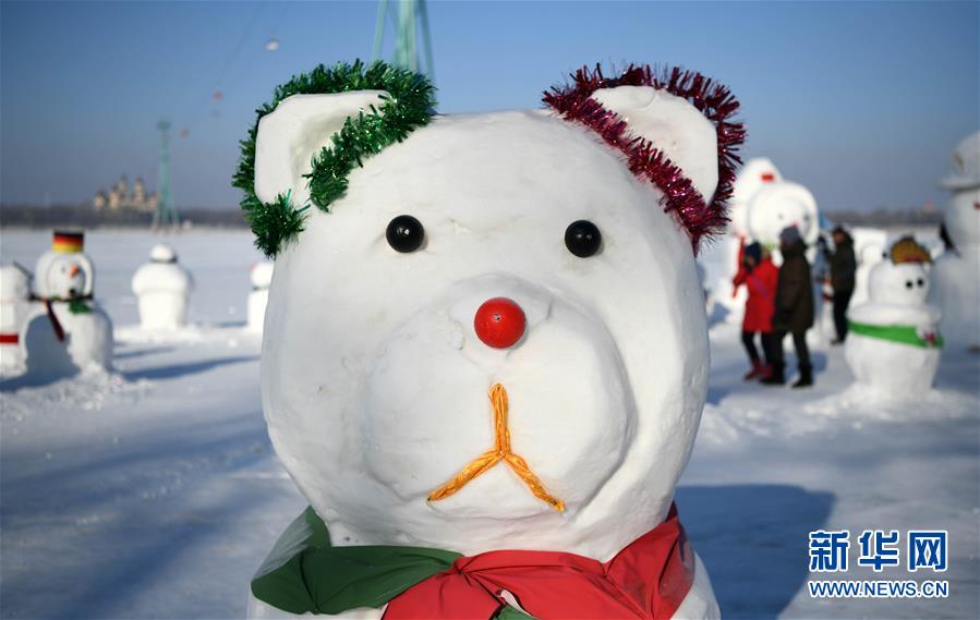 这是1月2日在松花江畔拍摄的雪人。 新华社记者 王建威 摄