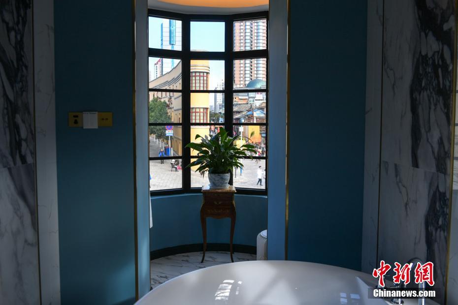1月2日,昆明老建筑“胜利酒杯”内的精品酒店正在试营业。位于昆明市抗战胜利纪念堂前的两个弧形建筑因形似酒杯被称为“胜利酒杯”,是昆明的标志性建筑之一。中新社记者 任东 摄