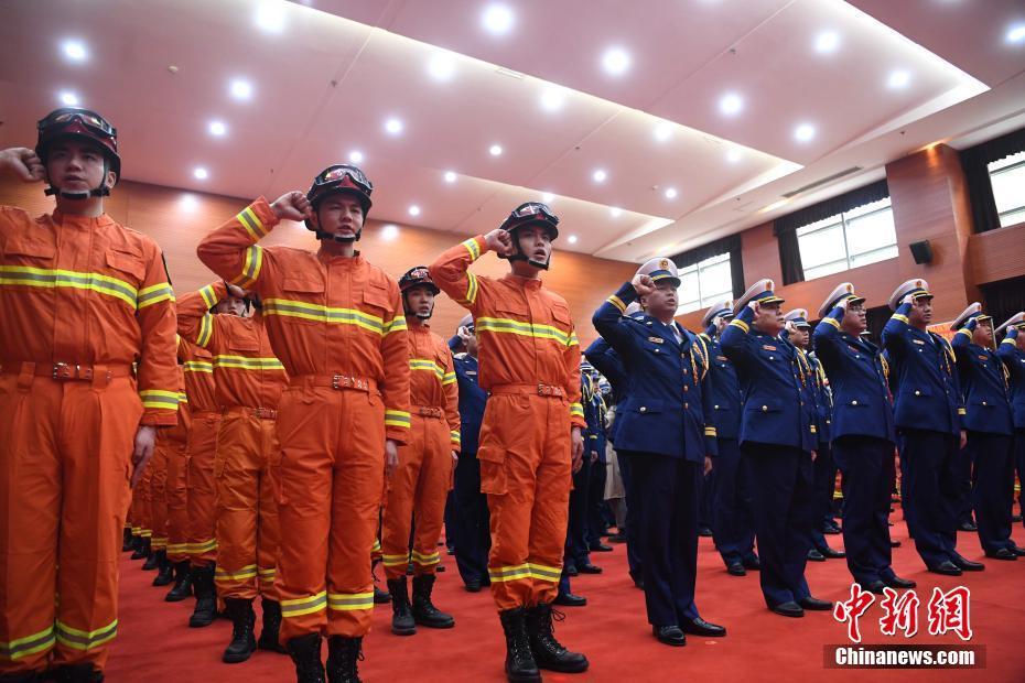 重庆南岸区消防救援支队举行迎旗授衔和换装仪式