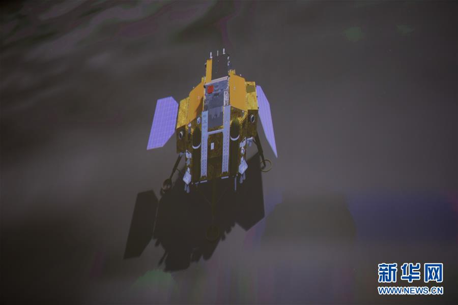 图为1月3日在北京航天飞行控制中心拍摄的嫦娥四号探测器展开太阳翼(示意图)。