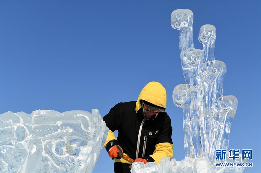 1月3日,参赛选手在进行冰雕创作。 新华社记者王建威摄