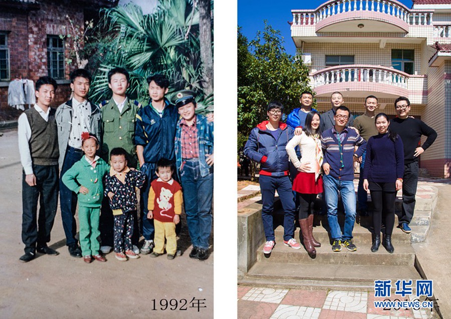 时隔二十多年兄弟姐妹在同一个地点拍摄合影,曾经的小孩都长大成人,而身后的老屋也由平房变成了三层小楼,生活条件越来越好,日子越过越美。巫啸铁 供图