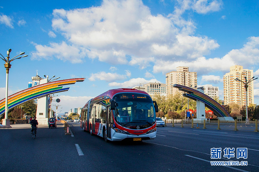 北京复兴路上,鲜艳的红色新能源大1路公交车成为一道靓丽的风景。郑志锋 摄