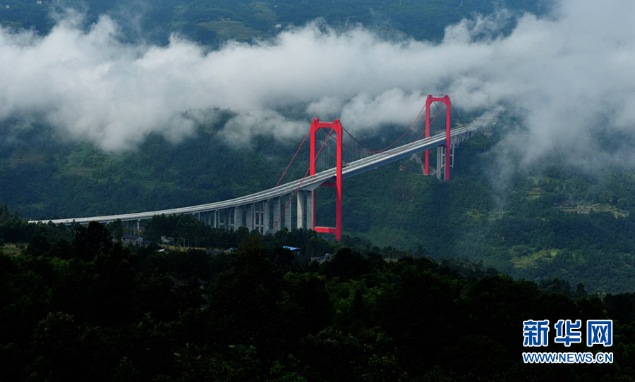 重庆市江津区江习高速笋溪河特大桥,全长1578米,河面到桥面290米,为目前重庆第一高桥。东胜场 摄