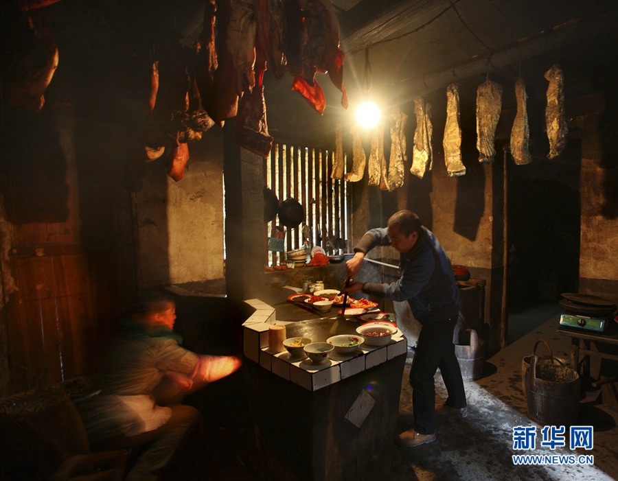 湖北利川团堡阴地山村,一村民家正在准备午餐。如今的农家饭丰盛且新鲜美味,让很多城里人也羡慕。夜雨 摄