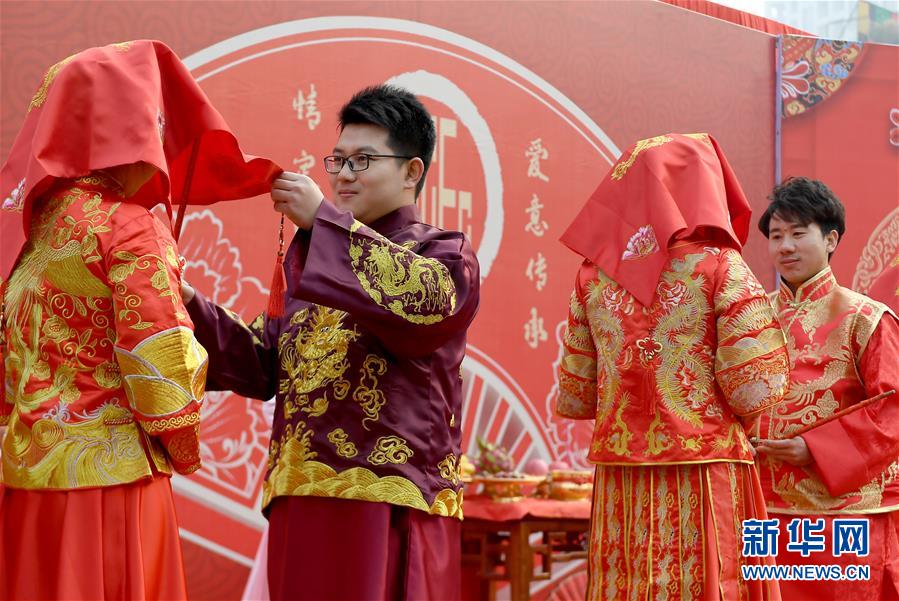 1月3日,新人们在婚礼现场。 新华社记者 刘潇摄