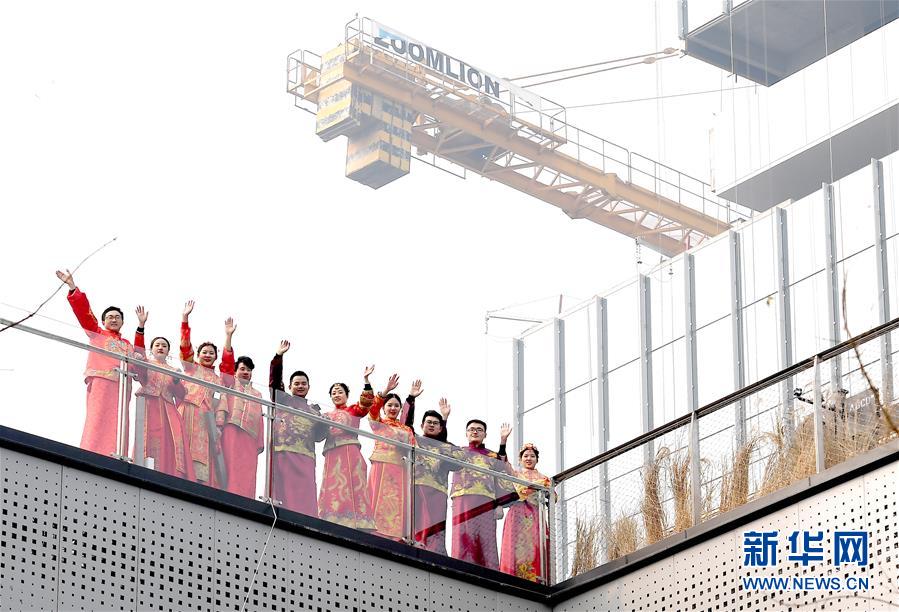 1月3日,新人们在自己参与建设的项目工地上合影留念。 新华社记者 刘潇摄