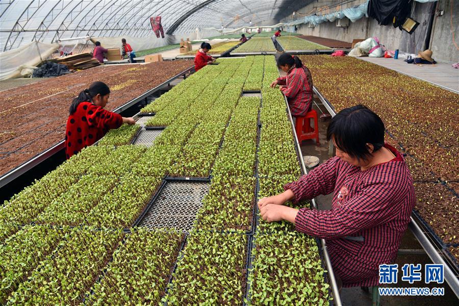 1月3日,在安徽省砀山县程庄镇一育苗温室里,农户在管护西瓜苗。 新华社发(崔猛 摄)