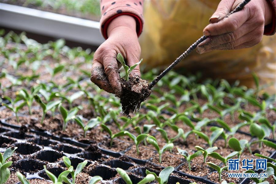 1月3日,在安徽省砀山县程庄镇一育苗温室里,农户在管护西瓜苗。 新华社发(崔猛 摄)