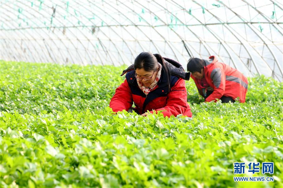 1月3日,在山东青岛西海岸新区大场镇一蔬菜基地,农户在管护大棚蔬菜。 新华社发(王培珂 摄)