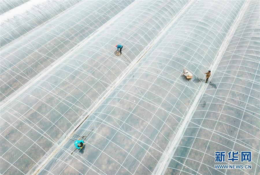 1月3日,在江西抚州市东乡区邓家乡花果山生态园,农户在搭建温室大棚。 新华社发(徐铮 摄)
