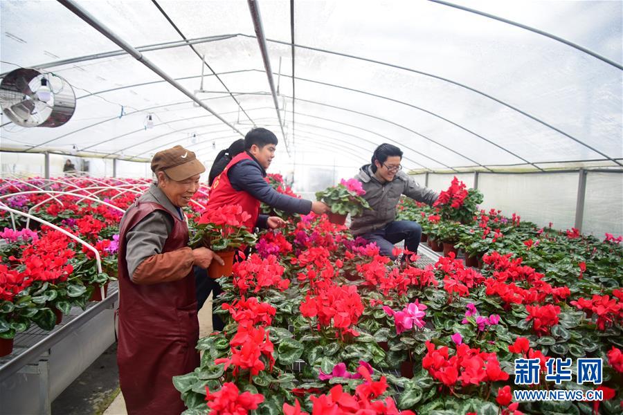 1月3日,在浙江省建德市航头镇溪沿村,党员青年志愿者帮助花农一起分拣鲜花。 新华社发(宁文武 摄)