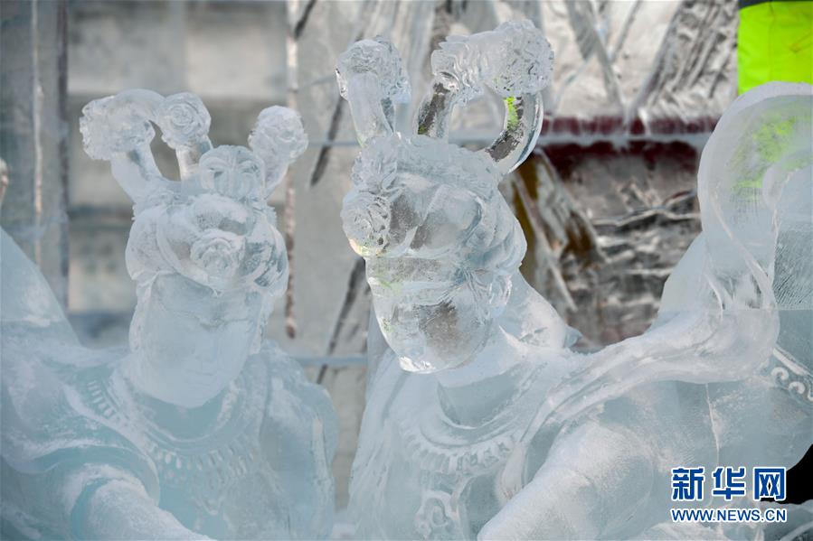 这是1月3日在哈尔滨冰雪大世界园区拍摄的冰雕作品。新华社记者 王松 摄