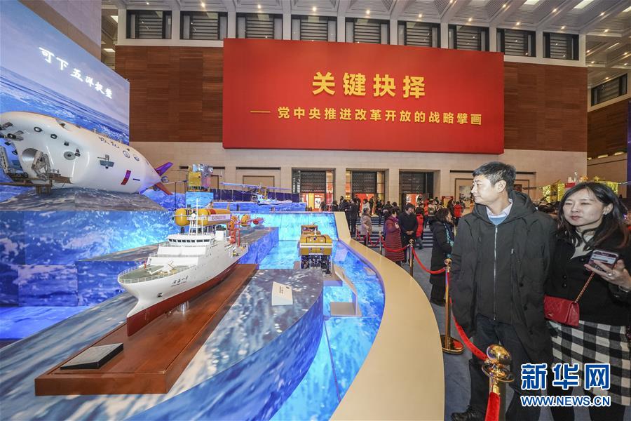 1月3日,观众在“伟大的变革——庆祝改革开放40周年大型展览”上参观。 新华社记者 殷刚摄