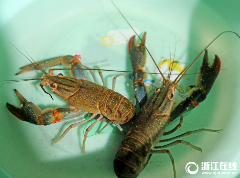 1月3日,湖州市吴兴区东林镇的澳洲淡水龙虾养殖基地,养殖户在查看龙虾生长情况。该养殖基地面积200亩左右,采用一套水体循环系统,养殖水自身净化不污染环境,还有加温设备,本地室外养殖的商品虾最多供应到11月份,而养殖基地的龙虾可以全年供应。目前在北京、上海、南京和杭州等地的餐桌上都可以看到它的身影。(浙江在线记者 林云龙 胡杨 摄)