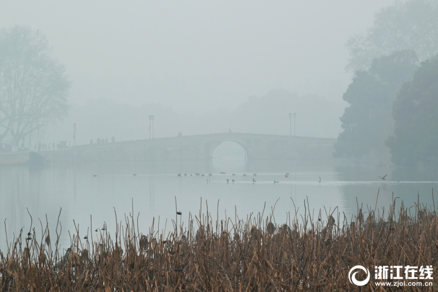 1月3日,被雾笼罩的西湖一片朦胧。而受暖湿气流影响,杭城时阴时雨的天气还将延续。(浙江在线拍友 里尔 摄)