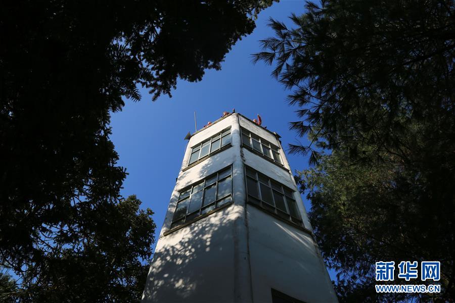 1月3日,张建、张忠、张华在拱拢坪林场的瞭望塔上观察林场动态。 新华社发(王纯亮 摄)