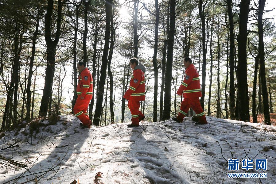 1月3日,张建、张忠、张华在拱拢坪林场护林巡山。新华社发(王纯亮 摄)