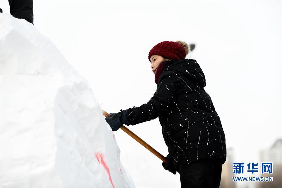 图为人工造雪吸引不少民众前来玩耍。 陈超 摄