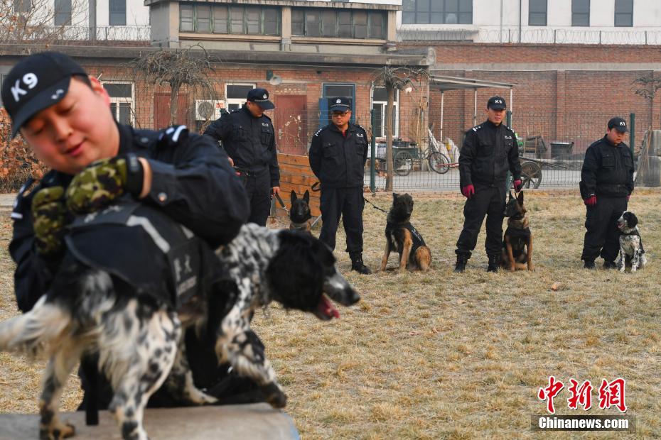 1月4日,北京铁路公安局石家庄公安处警犬工作队,训导员给警犬穿上警服,训练即将开始。为备战春运,该警犬工作队准备进行警犬拉练,其内容包括了警犬的追踪、搜捕、搜毒搜爆、扑咬、抗击打能力、耐力等内容。据了解,该警犬工作队现役警犬50余条,它们在治安巡逻、护卫、搜爆、搜毒、追踪中发挥着重要作用。中新社记者 翟羽佳 摄