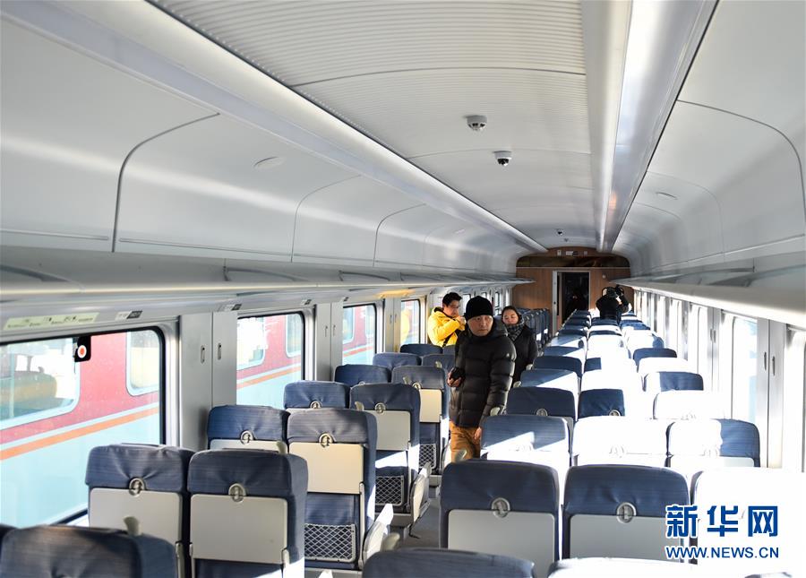1月4日拍摄的“绿巨人”列车二等座车厢。 随着2019年全国铁路新列车运行图的实施,被昵称为“绿巨人”的新型时速160公里动力集中动车组——CR200J型复兴号列车即将亮相京沪普速线。这批“绿巨人”列车上线运营后,将主要替换京沪普速线去往杭州、上海、上海虹桥、南京的列车。 新华社记者 张晨霖 摄