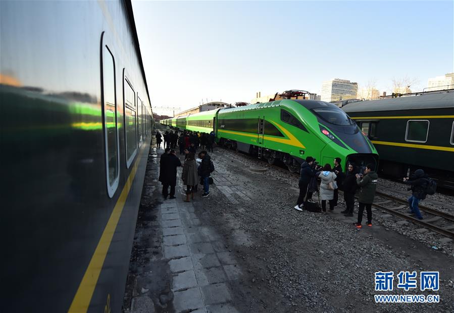 1月4日,“绿巨人”列车停靠在中国铁路北京局集团公司北京车辆段。 随着2019年全国铁路新列车运行图的实施,被昵称为“绿巨人”的新型时速160公里动力集中动车组——CR200J型复兴号列车即将亮相京沪普速线。这批“绿巨人”列车上线运营后,将主要替换京沪普速线去往杭州、上海、上海虹桥、南京的列车。 新华社记者 张晨霖 摄
